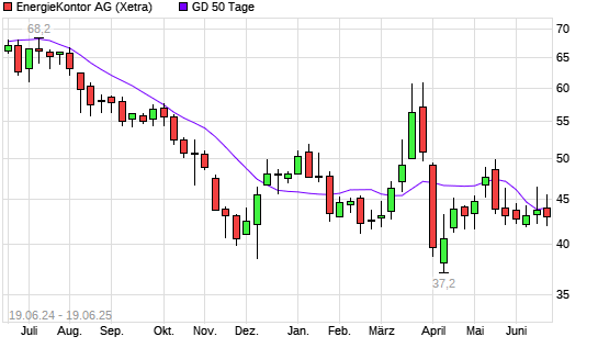 Mit dem Rücksetzer auf 43,55 EUR hat die Energiekontor-Aktie am 18.06.2025 die 50-Tage-Linie nach unten gekreuzt.Die Energiekontor-Aktie befindet sich seit dem 14.05.2025 im langfristigen ...weiterlesen