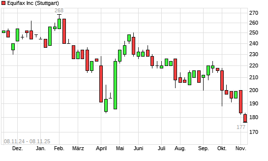 Mit dem Rücksetzer auf 175,00 EUR hat die Equifax-Aktie (ISIN US2944291051) am 07.11.2025 ein neues 12-Monats-Tief erreicht und damit den Kurs vom 06.11.2025 eingestellt.Die Equifax-Aktie ...weiterlesen