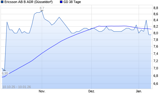 Mit dem Rücksetzer auf 8,00 EUR hat die Ericsson B ADR-Aktie am 09.01.2026 die 38-Tage-Linie nach unten gekreuzt.Die Ericsson B ADR-Aktie befindet sich seit dem 14.10.2025 im langfristigen ...weiterlesen