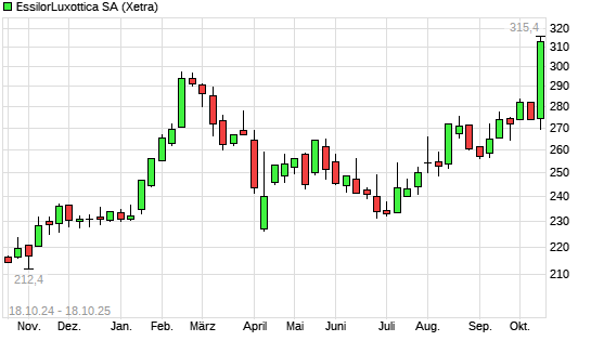 Mit dem Anstieg auf 309,90 EUR hat die EssilorLuxottica-Aktie (ISIN FR0000121667) am 17.10.2025 ein neues All-Time-High erreicht und damit den Kurs vom 19.02.2025 eingestellt.Die EssilorLuxottica-Aktie ...weiterlesen