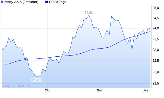 Mit dem Anstieg auf 24,00 EUR hat die Essity AB B-Aktie am 02.12.2025 die 38-Tage-Linie nach oben gekreuzt.Die Essity AB B-Aktie befindet sich seit dem 14.11.2025 im langfristigen Abwärtstrend ...weiterlesen