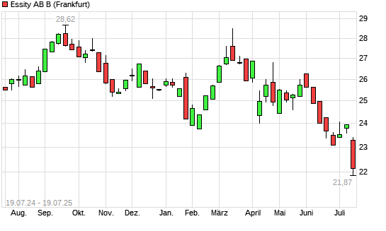 Mit dem Rücksetzer auf 22,03 EUR hat die Essity AB B-Aktie (ISIN SE0009922164) am 18.07.2025 ein neues 12-Monats-Tief erreicht und damit den Kurs vom 17.07.2025 eingestellt.Die Essity AB ...weiterlesen