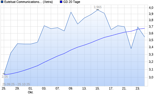 Mit dem Rücksetzer auf 3,52 EUR hat die Eutelsat Communications-Aktie am 24.10.2025 die 20-Tage-Linie nach unten gekreuzt.Die Eutelsat Communications-Aktie befindet sich seit dem 22.10.2025 ...weiterlesen