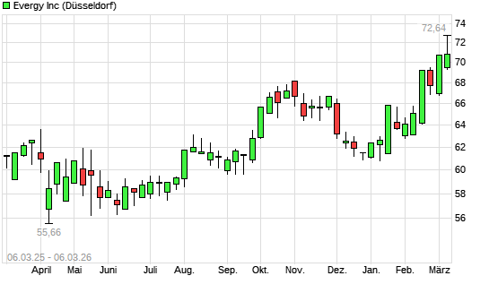 Mit dem Anstieg auf 72,12 EUR hat die Evergy-Aktie (ISIN US30034W1062) am 05.03.2026 ein neues All-Time-High erreicht und damit den Kurs vom 04.03.2026 eingestellt.Die ...weiterlesen