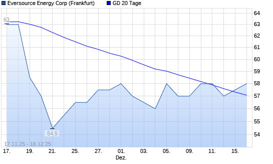 Mit dem Anstieg auf 57,50 EUR hat die Eversource Energy-Aktie am 15.12.2025 die 20-Tage-Linie nach oben gekreuzt.Die Eversource Energy-Aktie befindet sich seit dem 05.12.2025 im langfristigen ...weiterlesen