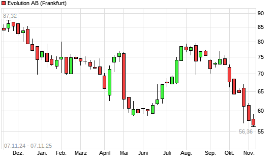 Mit dem Rücksetzer auf 56,36 EUR hat die Evolution Gaming Group-Aktie (ISIN SE0012673267) am 06.11.2025 ein neues 5-Jahres-Tief erreicht und damit den Kurs vom 04.11.2025 eingestellt.Die ...weiterlesen