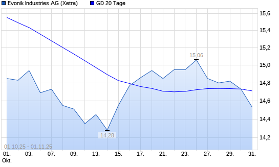 Mit dem Rücksetzer auf 14,56 EUR hat die Evonik Industries-Aktie am 31.10.2025 die 20-Tage-Linie nach unten gekreuzt.Die Evonik Industries-Aktie befindet sich seit dem 11.06.2025 im langfristigen ...weiterlesen