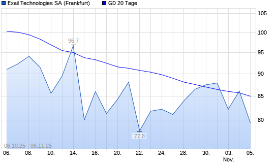 Mit dem Rücksetzer auf 79,40 EUR hat die Exail Technologies-Aktie am 05.11.2025 die 20-Tage-Linie nach unten gekreuzt.Die Exail Technologies-Aktie befindet sich seit dem 21.01.2025 im langfristigen ...weiterlesen