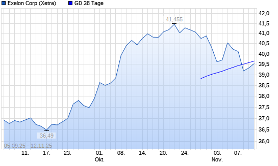Mit dem Rücksetzer auf 39,23 EUR hat die Exelon-Aktie am 11.11.2025 die 38-Tage-Linie nach unten gekreuzt.Die Exelon-Aktie befindet sich seit dem 07.10.2025 im langfristigen Aufwärtstrend ...weiterlesen