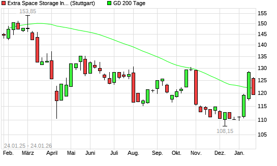 Mit dem Rücksetzer auf 119,15 EUR hat die Extra Space Storage-Aktie am 23.01.2026 die 200-Tage-Linie nach unten gekreuzt.Die Extra Space Storage-Aktie befand sich seit dem 15.01.2026 im ...weiterlesen