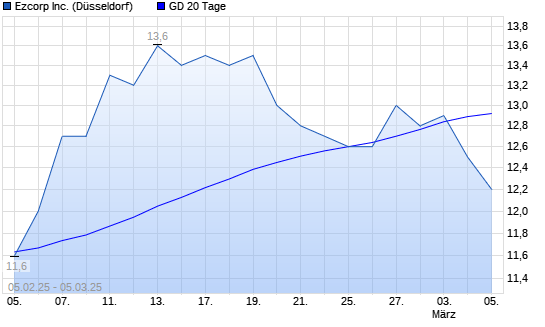 Mit dem Rücksetzer auf 12,90 EUR hat die Ezcorp-Aktie am 04.03.2025 die 20-Tage-Linie nach unten gekreuzt.Die Ezcorp-Aktie befindet sich seit dem 23.01.2024 im langfristigen Aufwärtstrend ...weiterlesen