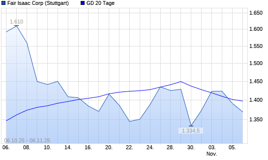 Mit dem Rücksetzer auf 1.393,50 EUR hat die FICO-Aktie am 05.11.2025 die 20-Tage-Linie nach unten gekreuzt.Die FICO-Aktie befindet sich seit dem 09.10.2025 im langfristigen Abwärtstrend ...weiterlesen