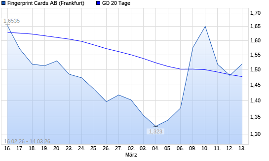 Mit dem Anstieg auf 1,52 EUR hat die FINGERPRINT CARDS-Aktie am 13.03.2026 die 20-Tage-Linie nach oben gekreuzt.Die FINGERPRINT CARDS-Aktie befindet sich seit dem 11.03.2026 ...weiterlesen