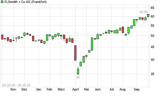 Mit dem Anstieg auf 60,60 EUR hat die FLSmidth-Aktie (ISIN DK0010234467) am 02.10.2025 ein neues 10-Jahres-Hoch erreicht und damit den Kurs vom 24.09.2025 eingestellt.Die FLSmidth-Aktie befindet ...weiterlesen