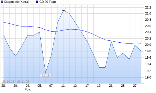 Mit dem Anstieg auf 20,10 EUR hat die Diageo-Aktie am 27.11.2025 die 20-Tage-Linie nach oben gekreuzt.Die Diageo-Aktie befindet sich seit dem 10.01.2025 im langfristigen Abwärtstrend und hat ...weiterlesen
