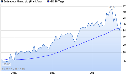 Mit dem Rücksetzer auf 33,82 EUR hat die Endeavour Mining-Aktie am 22.10.2025 die 38-Tage-Linie nach unten gekreuzt.Die Endeavour Mining-Aktie befindet sich seit dem 08.04.2025 im langfristigen ...weiterlesen