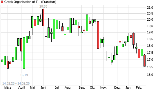 Mit dem Rücksetzer auf 16,56 EUR hat die Greek Organisation of Football Prognostics-Aktie (ISIN GRS419003009) am 13.02.2026 ein neues 6-Monats-Tief erreicht und damit den Kurs vom 18.11.2025 ...weiterlesen