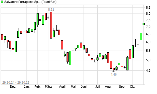 Mit dem Anstieg auf 7,23 EUR hat die Salvatore Ferragamo-Aktie (ISIN IT0004712375) am 28.10.2025 ein neues 6-Monats-Hoch erreicht und damit den Kurs vom 27.10.2025 ...weiterlesen