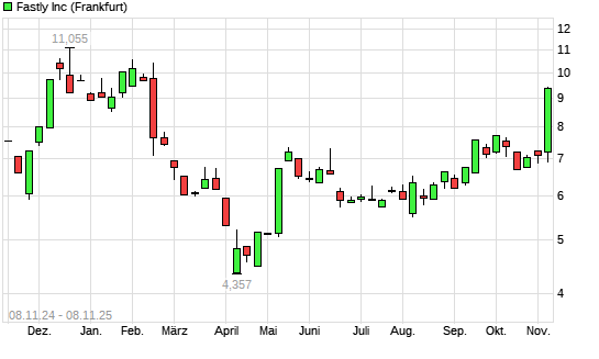 Mit dem Anstieg auf 9,43 EUR hat die Fastly-Aktie (ISIN US31188V1008) am 07.11.2025 ein neues 6-Monats-Hoch erreicht und damit den Kurs vom 02.10.2025 eingestellt.Die Fastly-Aktie befindet sich ...weiterlesen