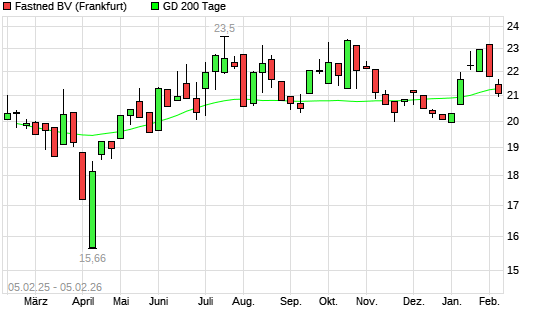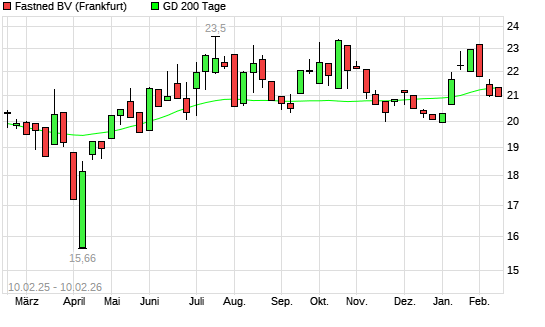 Mit dem Anstieg auf 21,35 EUR hat die Fastned-Aktie am 09.02.2026 die 200-Tage-Linie nach oben gekreuzt.Die Fastned-Aktie befand sich seit dem 04.02.2026 im langfristigen Abwärtstrend und hat ...weiterlesen