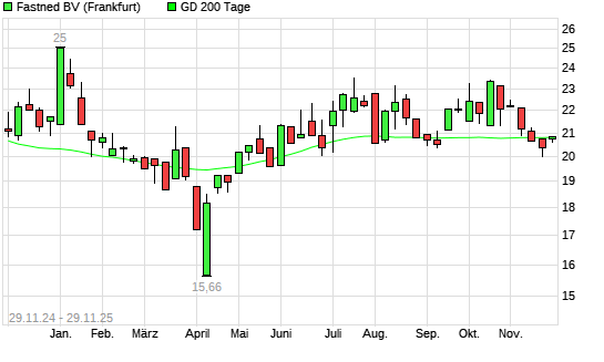 Mit dem Anstieg auf 20,85 EUR hat die Fastned-Aktie am 28.11.2025 die 200-Tage-Linie nach oben gekreuzt.Die Fastned-Aktie befand sich seit dem 27.11.2025 im langfristigen Abwärtstrend und hat ...weiterlesen