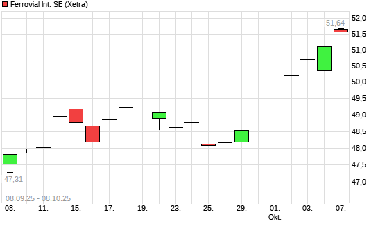 Mit dem Anstieg auf 51,16 EUR hat die Ferrovial-Aktie (ISIN NL0015001FS8) am 07.10.2025 ein neues All-Time-High erreicht und damit den Kurs vom 06.10.2025 eingestellt.Die Ferrovial-Aktie befindet ...weiterlesen