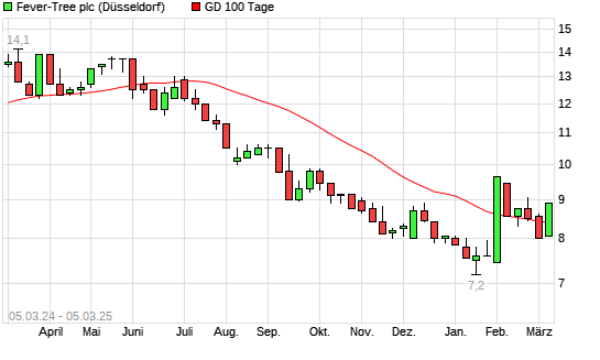 Mit dem Anstieg auf 8,45 EUR hat die Fever-Tree-Aktie am 04.03.2025 die 100-Tage-Linie nach oben gekreuzt.Die Fever-Tree-Aktie befindet sich seit dem 08.07.2024 im langfristigen Abwärtstrend ...weiterlesen