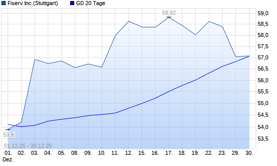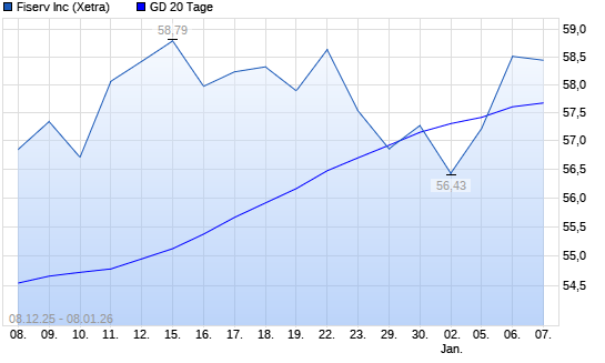 Mit dem Anstieg auf 58,93 EUR hat die Fiserv-Aktie am 07.01.2026 die 20-Tage-Linie nach oben gekreuzt.Die Fiserv-Aktie befindet sich seit dem 24.04.2025 im langfristigen Abwärtstrend und hat ...weiterlesen