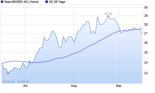 Mit dem Rücksetzer auf 27,42 EUR hat die Flatexdegiro-Aktie am 15.09.2025 die 38-Tage-Linie nach unten gekreuzt.Die Flatexdegiro-Aktie befindet sich seit dem 12.03.2024 im langfristigen ...weiterlesen
