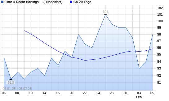 Mit dem Anstieg auf 96,00 EUR hat die Floor & Decor Holdings-Aktie am 04.02.2025 die 20-Tage-Linie nach oben gekreuzt.Die Floor & Decor Holdings-Aktie befindet sich seit dem 29.01.2025 im ...weiterlesen