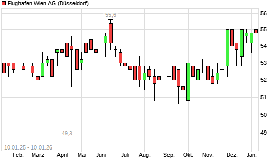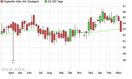 Mit dem Rücksetzer auf 52,60 EUR hat die Flughafen Wien-Aktie am 04.03.2026 die 200-Tage-Linie nach unten gekreuzt.Die Flughafen Wien-Aktie befand sich seit dem 24.11.2025 ...weiterlesen
