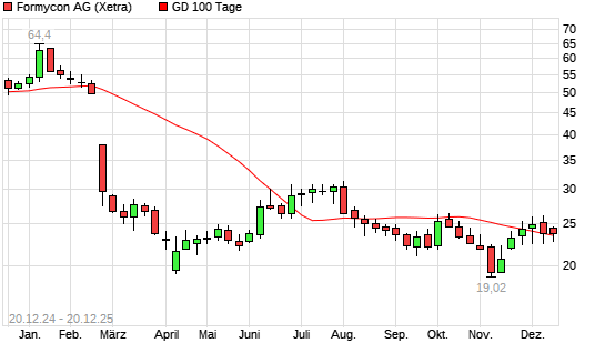 Mit dem Anstieg auf 23,65 EUR hat die Formycon-Aktie am 19.12.2025 die 100-Tage-Linie nach oben gekreuzt.Die Formycon-Aktie befindet sich seit dem 08.12.2025 im langfristigen Abwärtstrend und ...weiterlesen