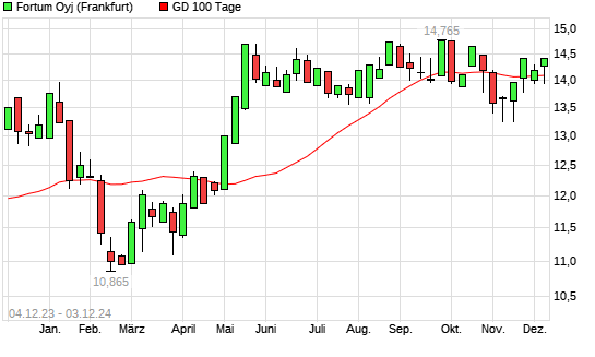 Mit dem Rücksetzer auf 13,95 EUR hat die Fortum-Aktie am 02.12.2024 die 100-Tage-Linie nach unten gekreuzt.Die Fortum-Aktie befindet sich seit dem 08.11.2024 im langfristigen Aufwärtstrend ...weiterlesen