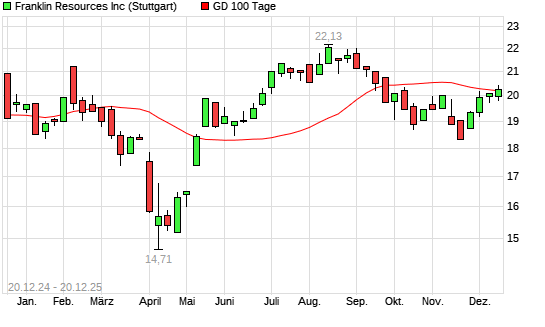Mit dem Anstieg auf 20,30 EUR hat die Franklin Resources-Aktie am 19.12.2025 die 100-Tage-Linie nach oben gekreuzt.Die Franklin Resources-Aktie befindet sich seit dem 04.12.2025 im langfristigen ...weiterlesen