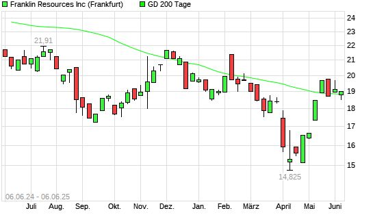 Mit dem Rücksetzer auf 18,68 EUR hat die Franklin Resources-Aktie am 05.06.2025 die 200-Tage-Linie nach unten gekreuzt.Die Franklin Resources-Aktie befand sich seit dem 04.06.2025 im langfristigen ...weiterlesen