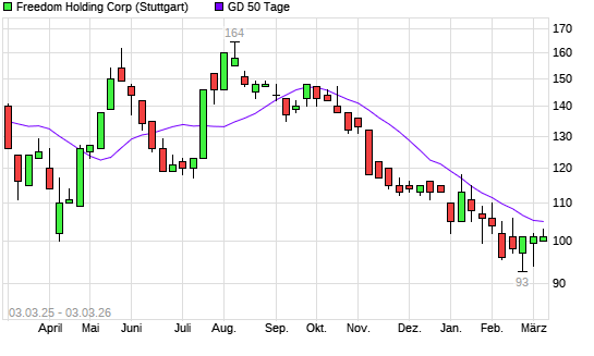 Mit dem Anstieg auf 107,00 EUR hat die Freedom Holding-Aktie am 02.03.2026 die 50-Tage-Linie nach oben gekreuzt.Die Freedom Holding-Aktie befindet sich seit dem 21.10.2025 im ...weiterlesen