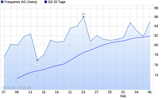 Mit dem Anstieg auf 81,40 EUR hat die Frequentis-Aktie am 06.02.2026 die 20-Tage-Linie nach oben gekreuzt.Die Frequentis-Aktie befindet sich seit dem 07.02.2025 im langfristigen Aufwärtstrend ...weiterlesen
