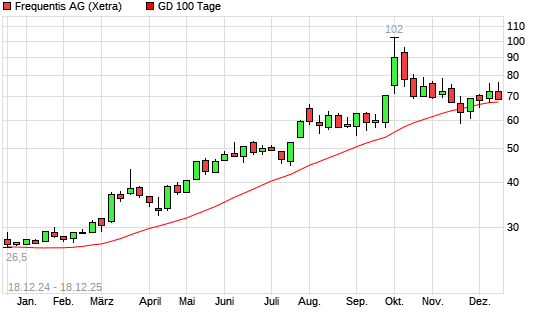 Mit dem Anstieg auf 69,00 EUR hat die Frequentis-Aktie am 19.12.2025 die 100-Tage-Linie nach oben gekreuzt.Die Frequentis-Aktie befindet sich seit dem 07.02.2025 im langfristigen Aufwärtstrend ...weiterlesen