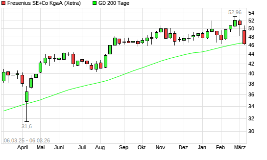 Mit dem Rücksetzer auf 46,31 EUR hat die Fresenius-Aktie am 05.03.2026 die 200-Tage-Linie nach unten gekreuzt.Die Fresenius-Aktie befand sich seit dem 29.04.2024 im ...weiterlesen