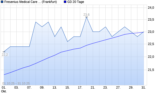 Mit dem Rücksetzer auf 22,80 EUR hat die Fresenius Medical Care ADR-Aktie am 30.10.2025 die 20-Tage-Linie nach unten gekreuzt.Die Fresenius Medical Care ADR-Aktie befindet sich seit dem ...weiterlesen
