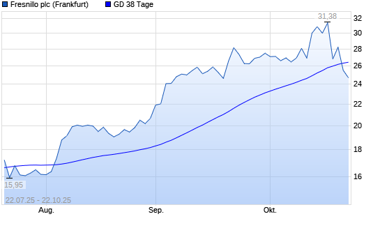 Mit dem Rücksetzer auf 25,50 EUR hat die Fresnillo-Aktie am 21.10.2025 die 38-Tage-Linie nach unten gekreuzt.Die Fresnillo-Aktie befindet sich seit dem 12.09.2024 im langfristigen Aufwärtstrend ...weiterlesen