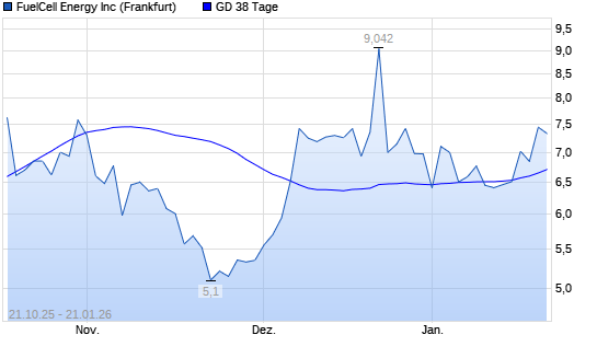 Mit dem Anstieg auf 7,45 EUR hat die FuelCell Energy-Aktie am 20.01.2026 die 38-Tage-Linie nach oben gekreuzt.Die FuelCell Energy-Aktie befindet sich seit dem 26.11.2025 im langfristigen Aufwärtstrend ...weiterlesen