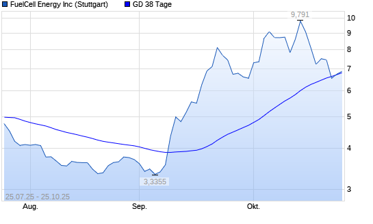 Mit dem Anstieg auf 6,85 EUR hat die FuelCell Energy-Aktie am 24.10.2025 die 38-Tage-Linie nach oben gekreuzt.Die FuelCell Energy-Aktie befindet sich seit dem 17.09.2025 im ...weiterlesen