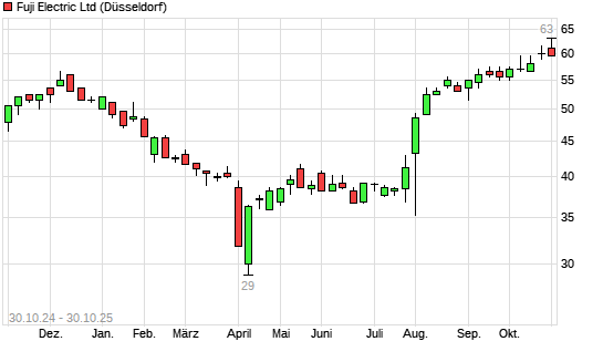 Mit dem Anstieg auf 62,00 EUR hat die Fuji Electric-Aktie (ISIN JP3820000002) am 29.10.2025 ein neues 12-Monats-Hoch erreicht und damit den Kurs vom 27.10.2025 eingestellt.Die Fuji Electric-Aktie ...weiterlesen