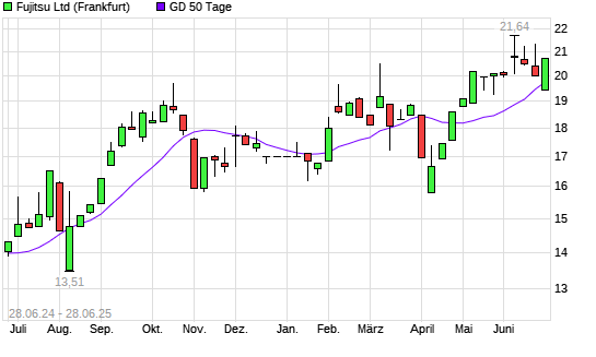 Mit dem Anstieg auf 20,74 EUR hat die Fujitsu-Aktie am 27.06.2025 die 50-Tage-Linie nach oben gekreuzt.Die Fujitsu-Aktie befindet sich seit dem 17.04.2025 im langfristigen Aufwärtstrend und ...weiterlesen
