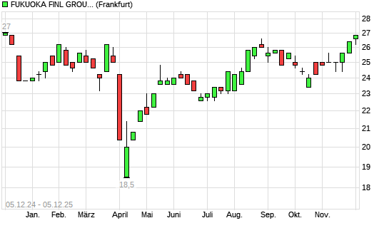 Mit dem Anstieg auf 26,80 EUR hat die Fukuoka Financial Group-Aktie (ISIN JP3805010000) am 04.12.2025 ein neues 6-Monats-Hoch erreicht und damit den Kurs vom 26.08.2025 eingestellt.Die Fukuoka ...weiterlesen