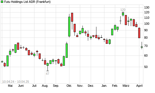 Mit dem Rücksetzer auf 66,50 EUR hat die Futu Holdings ADR-Aktie (ISIN US36118L1061) am 09.04.2025 ein neues 6-Monats-Tief erreicht und damit den Kurs vom 07.04.2025 eingestellt.Die Futu ...weiterlesen