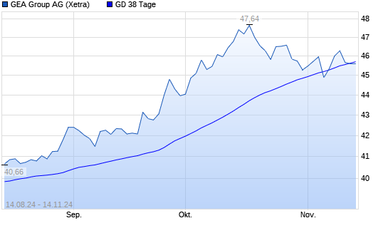Mit dem Rücksetzer auf 45,44 EUR hat die GEA Group-Aktie am 13.11.2024 die 38-Tage-Linie nach unten gekreuzt.Die GEA Group-Aktie befindet sich seit dem 06.02.2024 im langfristigen Aufwärtstrend ...weiterlesen