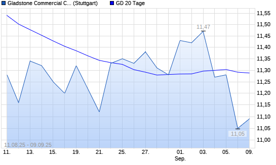 Mit dem Anstieg auf 11,39 EUR hat die GLADSTONE COMMERCIAL CORPORATI-Aktie am 08.09.2025 die 20-Tage-Linie nach oben gekreuzt.Die GLADSTONE COMMERCIAL CORPORATI-Aktie befindet sich seit dem ...weiterlesen