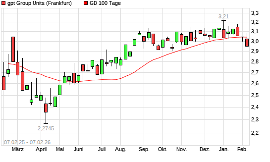 Mit dem Rücksetzer auf 2,95 EUR hat die GPT Group-Aktie am 06.02.2026 die 100-Tage-Linie nach unten gekreuzt.Die GPT Group-Aktie befindet sich seit dem 01.07.2025 im langfristigen Aufwärtstrend ...weiterlesen